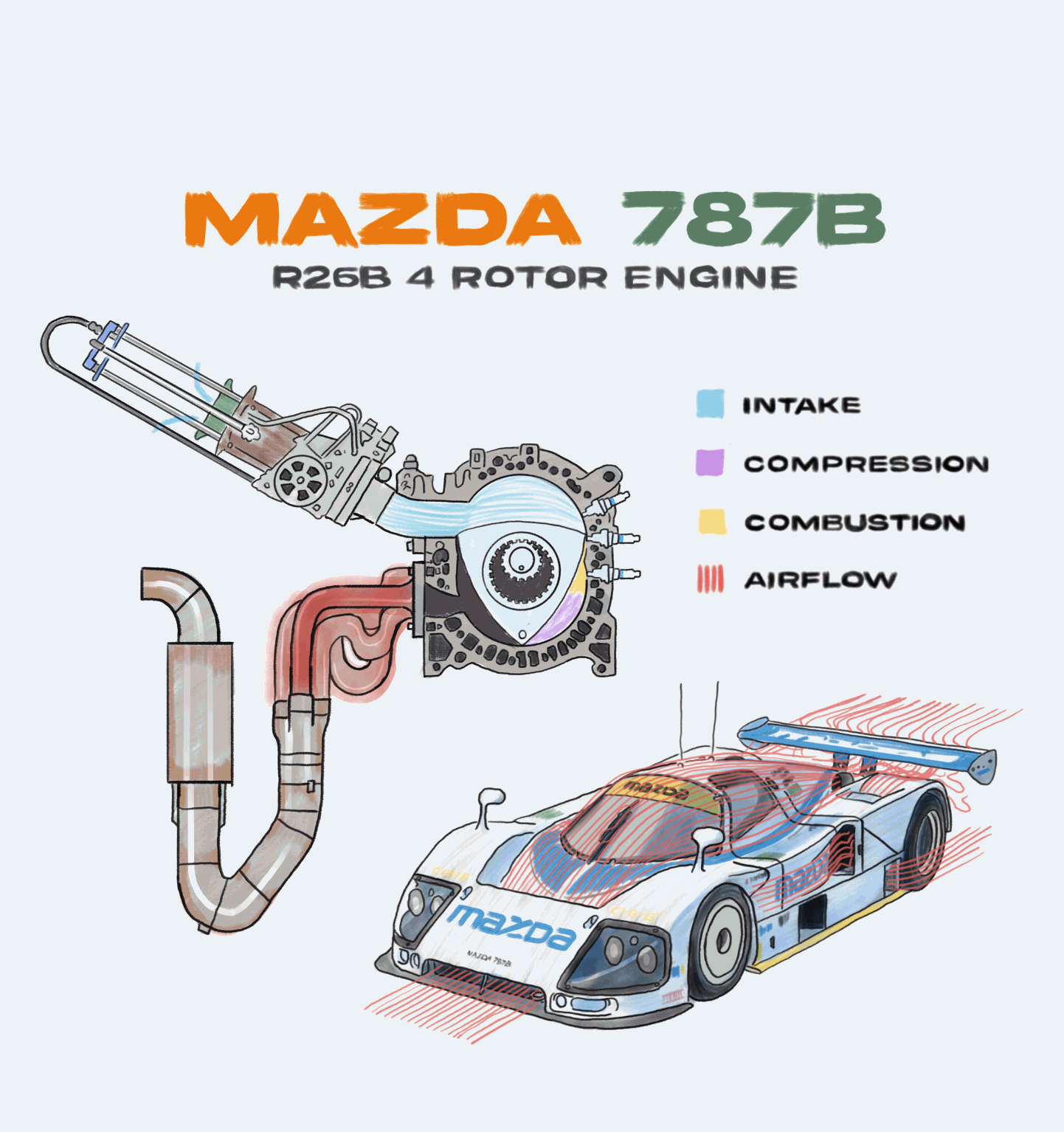 Mazda 787B Rotary Engine and Aero Animated Diagram, procreate